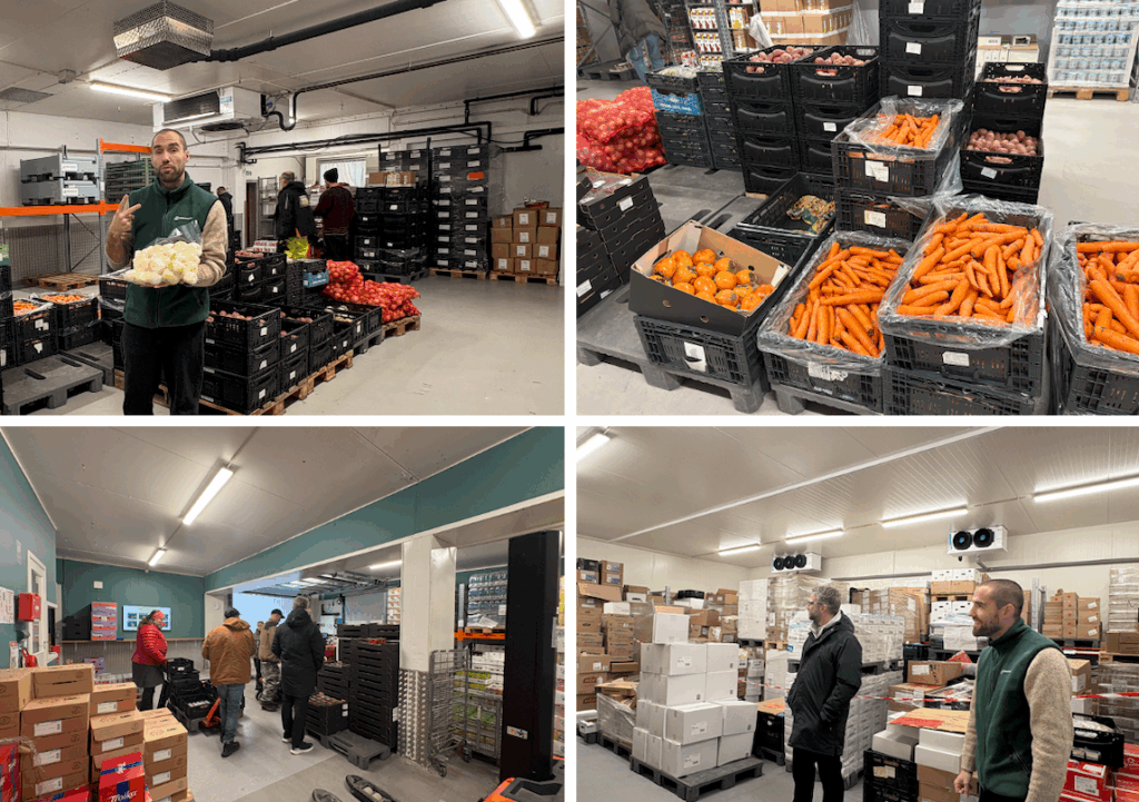 Ved ankomst var flere frivillige organisasjoner allerede i full aktivitet på lageret. Mat ble sortert, pakket og klargjort for videre distribusjon. Daglig leder i Matsentralen, Jort Reitsma, fortalte om den omfattende logistikken, samarbeidet og innsatsen som kreves for å sikre at overskuddsmat når frem til mennesker som trenger det.